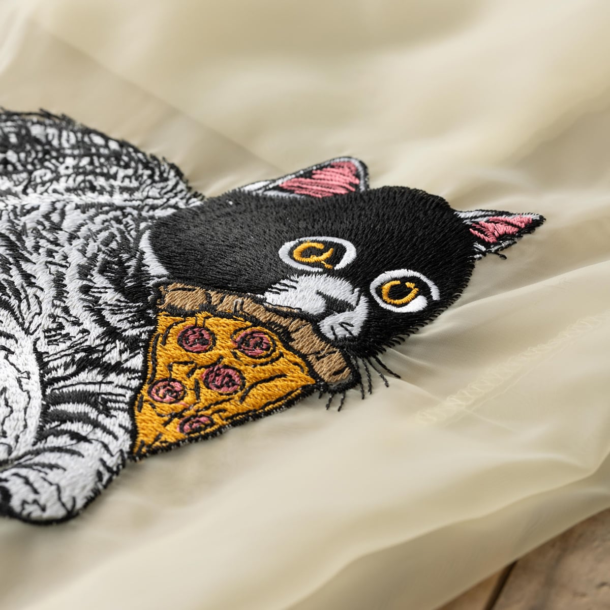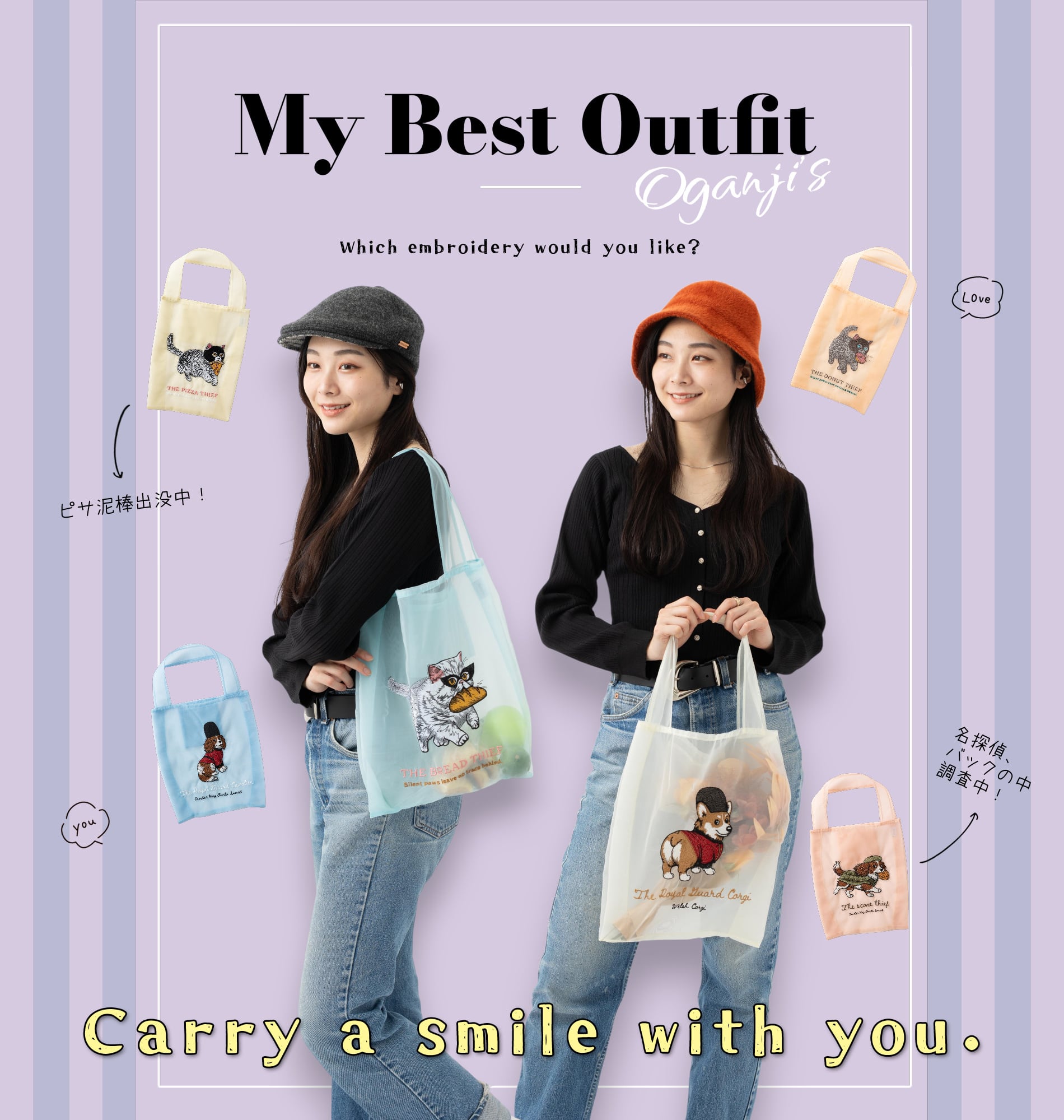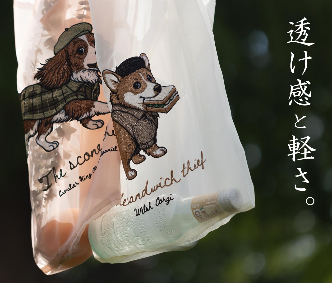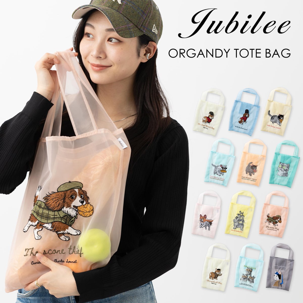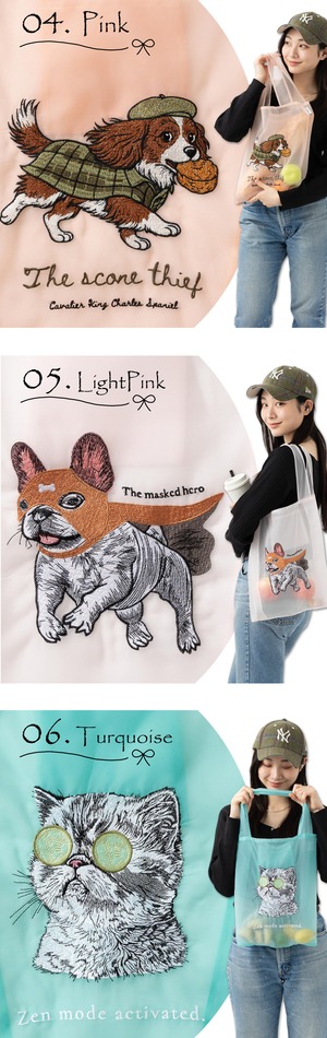 犬猫デザイン オーガンジー 刺繍エコトートバッグ