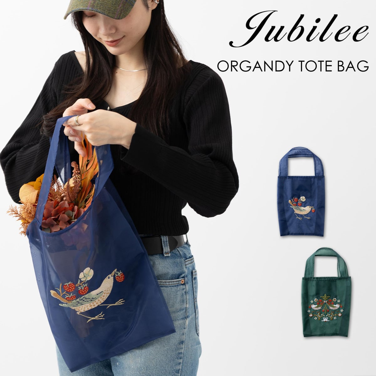 軽やかなオーガンジー素材に、繊細な刺繍を施したJUBILEEのトートバッグ。