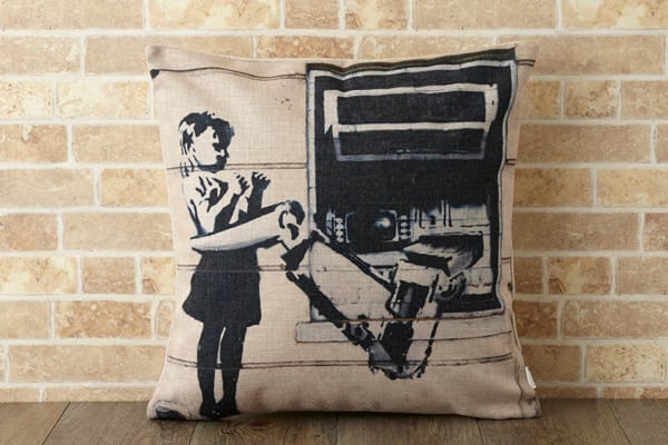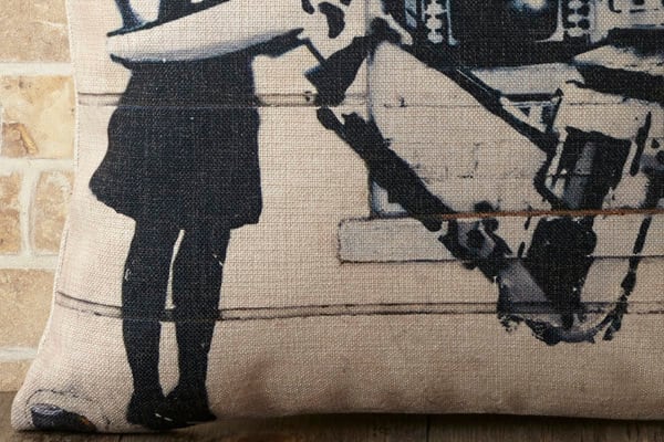 Banksy (バンクシー) デザイン クッションカバー。