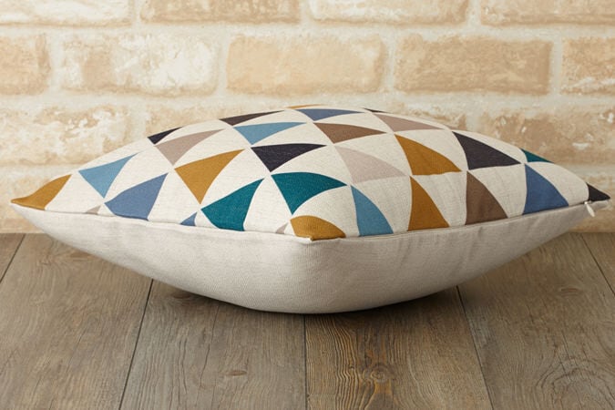 クッションカバー ブルーマスタードダイヤモンド