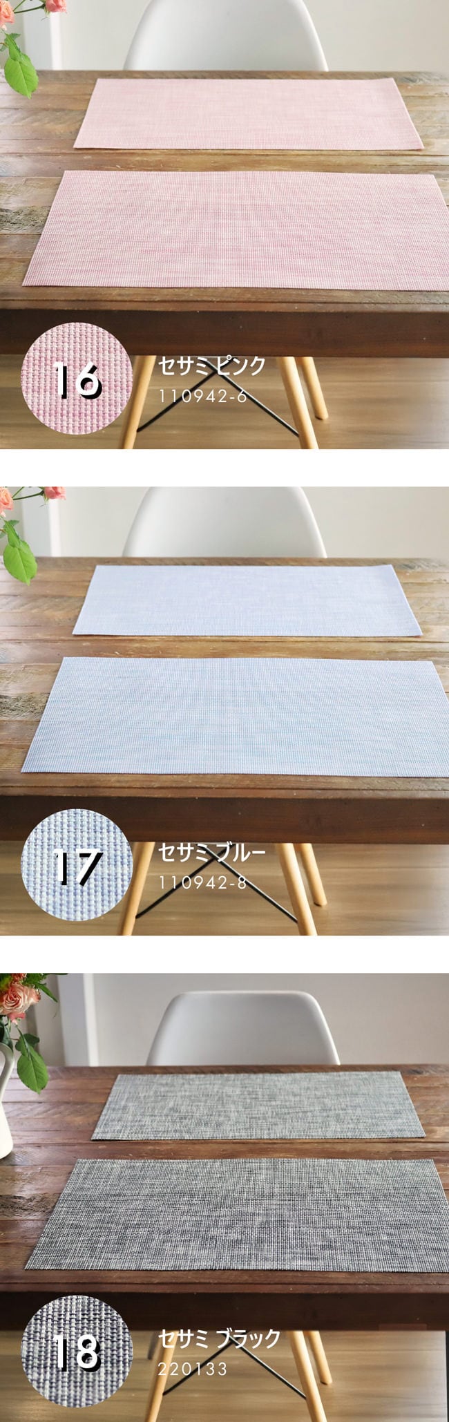 光沢のあるソフトなPVC素材を編み込みにした丈夫なランチマット。
