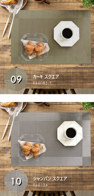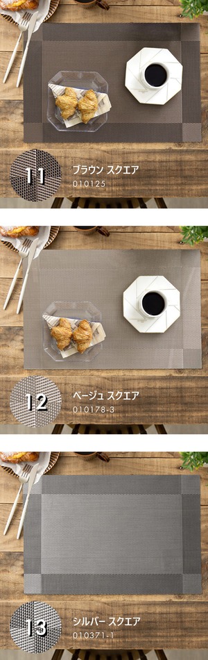 光沢のあるソフトなPVC素材を編み込みにした丈夫なランチマット。
