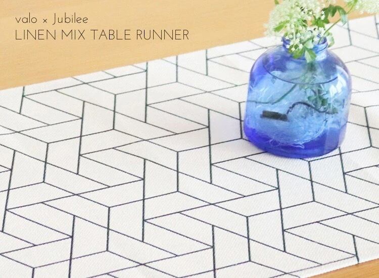 ジオメトリック柄がお洒落なvalo×Jubileeコラボのコットンリネンテーブルランナー。