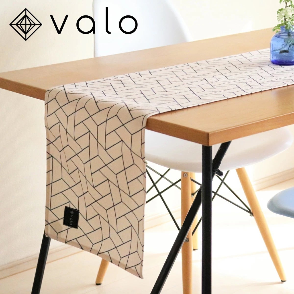 ジオメトリック柄がお洒落なvalo×Jubileeコラボのコットンリネンテーブルランナー。