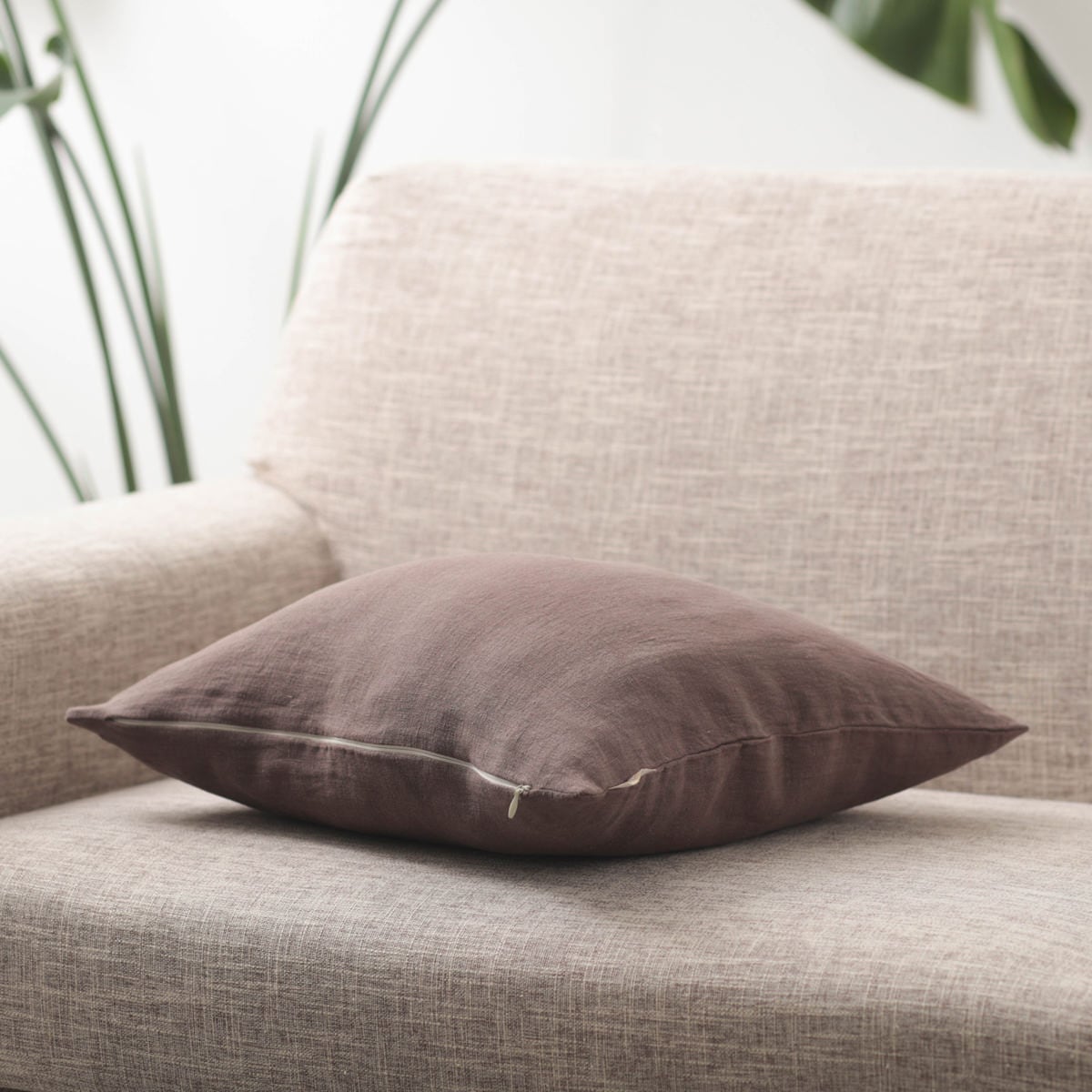 天然リネン100% クッションカバー ブラウン