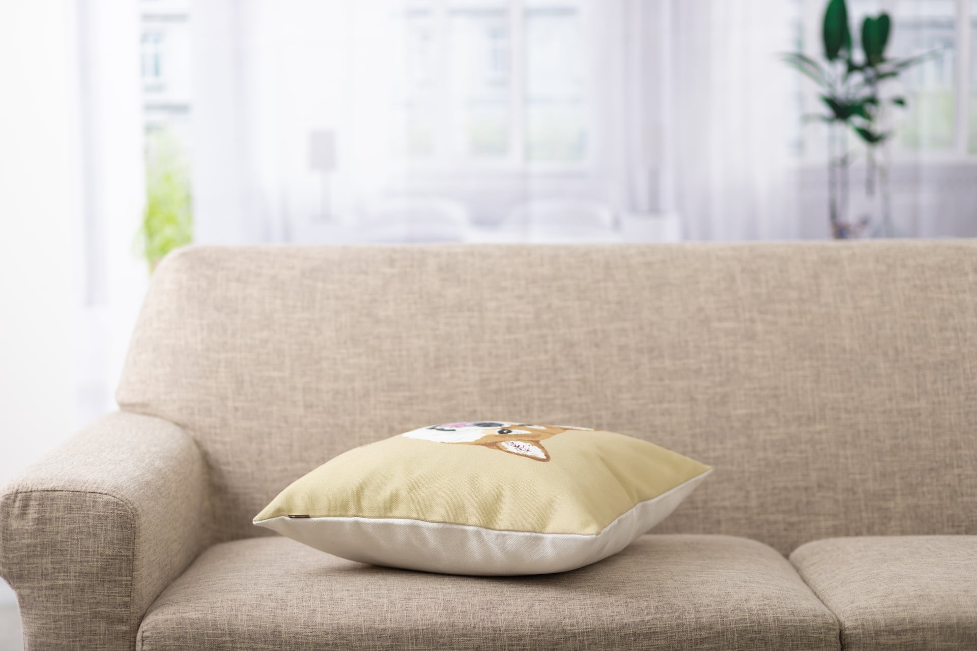 クッションカバーで、部屋の雰囲気が変わります。
