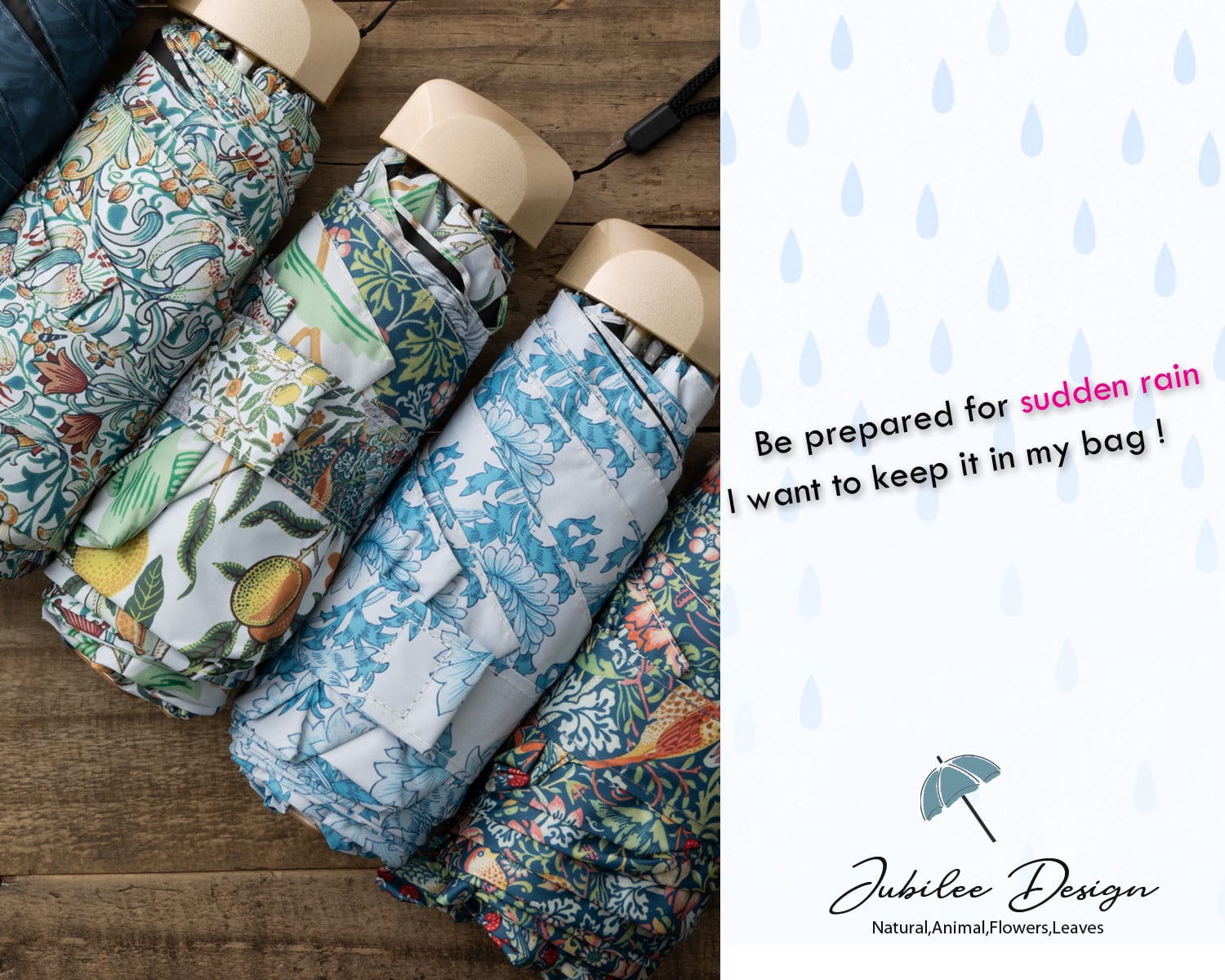 Jubileeからウィリアム・モリスデザインを使用した 薄型でコンパクトな手のひらサイズの折りたたみ傘が登場。