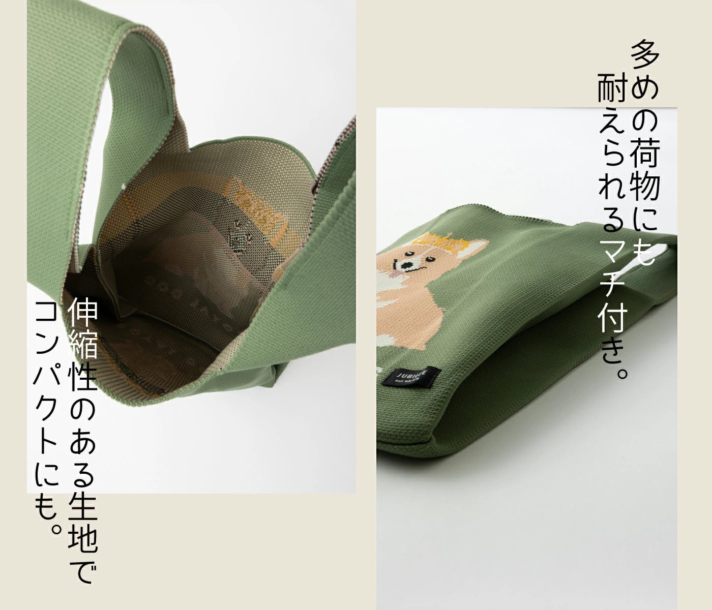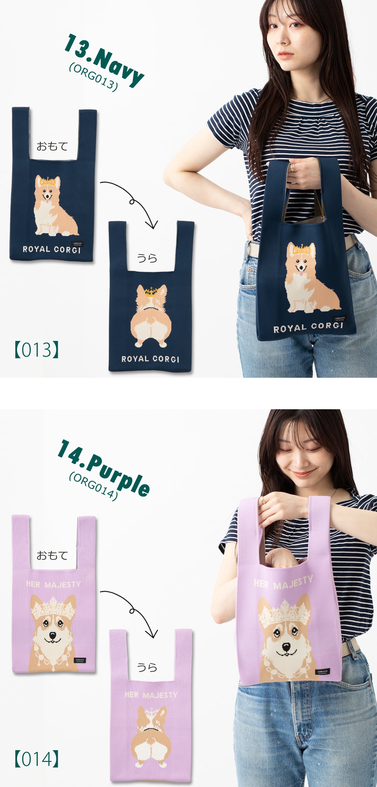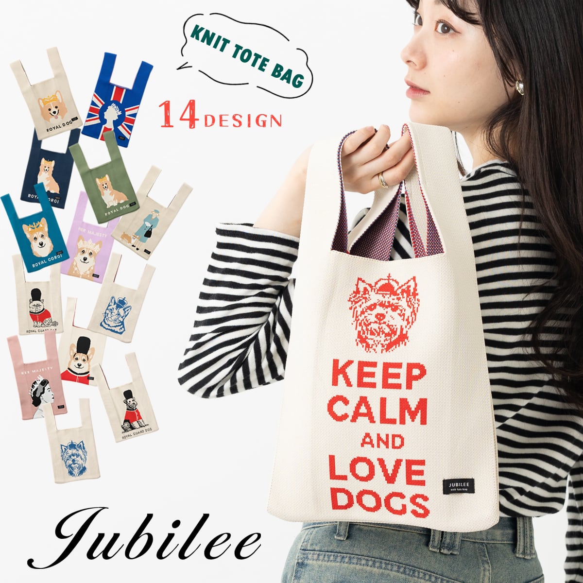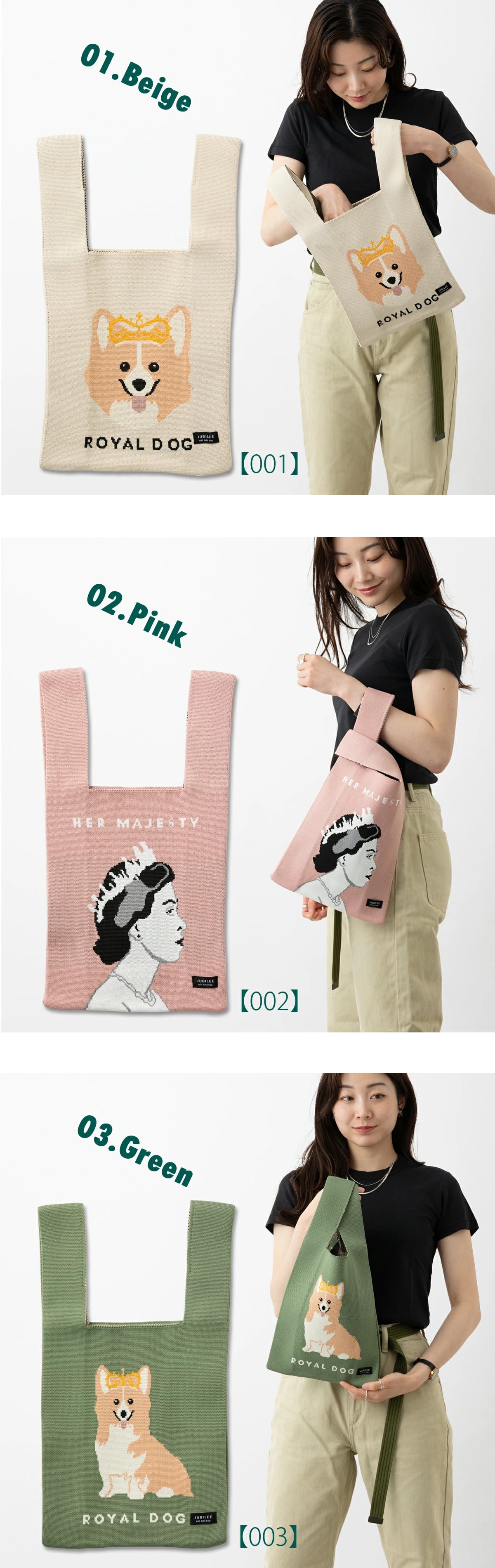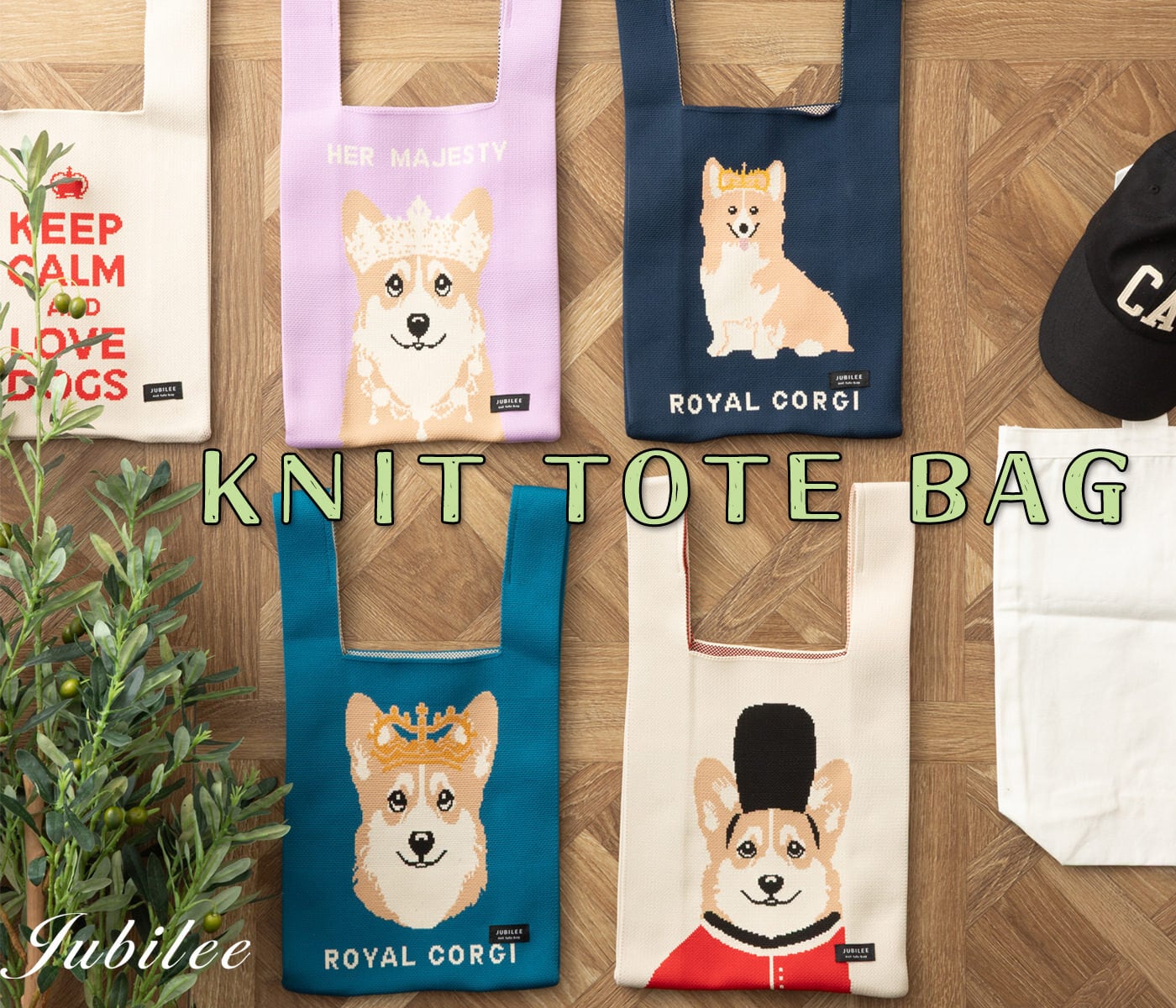 ニットトートバッグ 英国 ロイヤルモチーフデザイン マルシェバック コーギー エリザベス女王 ユニオンジャック