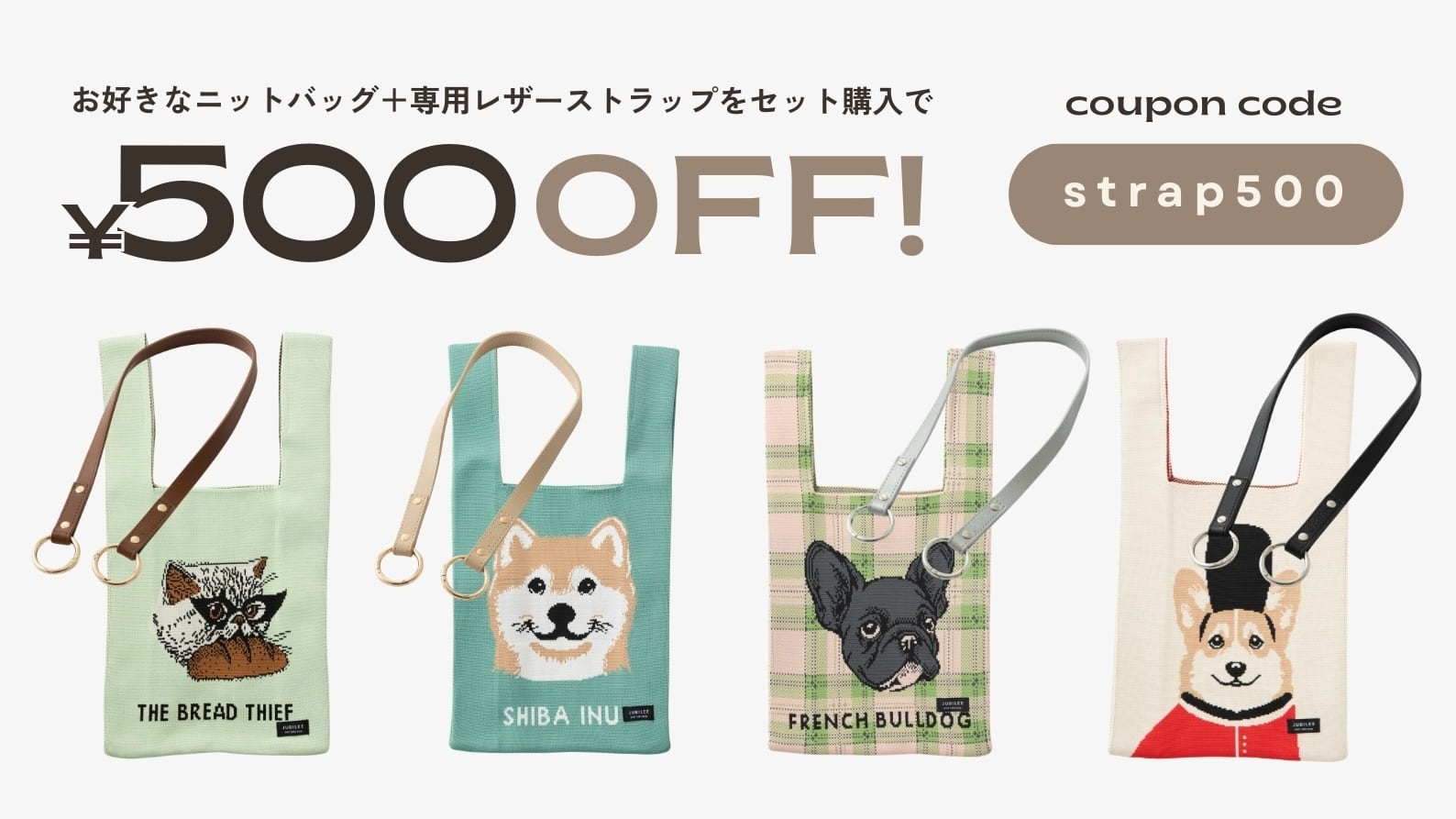 お好きなニットバッグ&専用レザーストラップをセット購入で500円引き